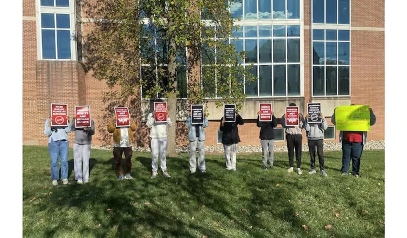 रटगर्स यूनिवर्सिटी में हिंदू छात्रों ने पैनल स्थल के बाहर शांतिपूर्ण प्रदर्शन किया।