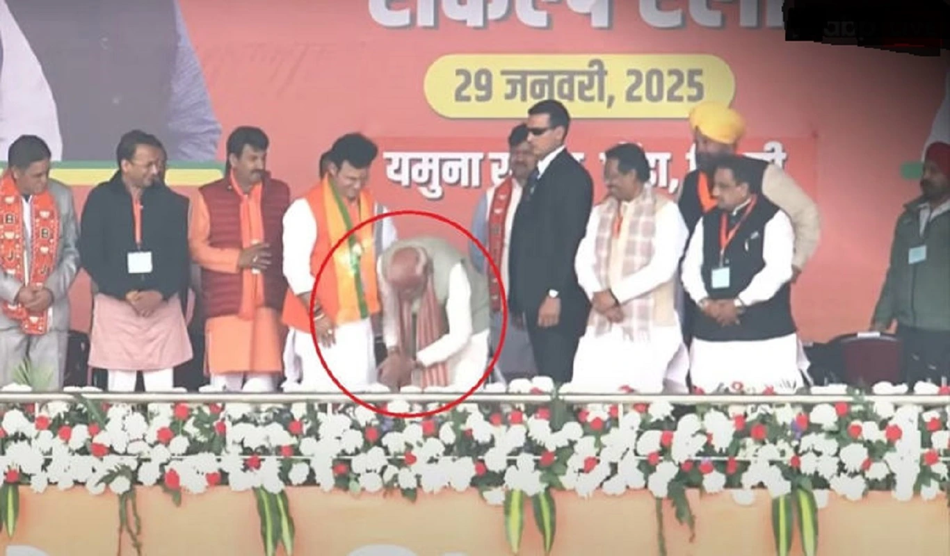 जब प्रधानमंत्री नरेंद्र मोदी मंच पर पहुंचे, तो अलग-अलग विधानसभा क्षेत्रों से बीजेपी के उम्मीदवारों को उनसे मिलने के लिए बुलाया गया। इसी क्रम में पटपड़गंज विधानसभा सीट से बीजेपी प्रत्याशी रवींद्र सिंह नेगी पीएम मोदी से मिलने पहुंचे। उन्होंने आते ही प्रधानमंत्री के पैर छूने की कोशिश की, लेकिन मोदी ने तुरंत उन्हें रोका। इसके बावजूद, पीएम मोदी खुद झुककर तीन बार उनके पैर छूते नजर आए। इस अप्रत्याशित घटना ने रैली में मौजूद सभी लोगों का ध्यान अपनी ओर खींचा।